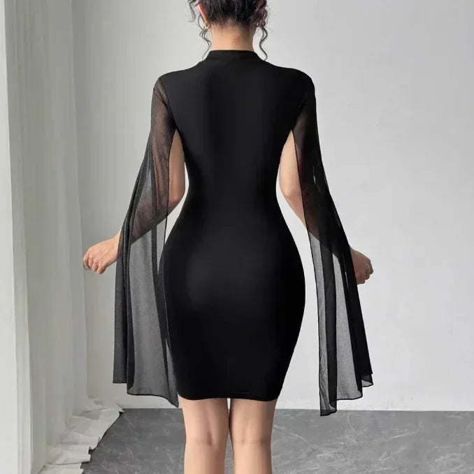 Elegant Cape-Sleeve Dress - 2025 Office Lady Pearl Chiffon Party Dress