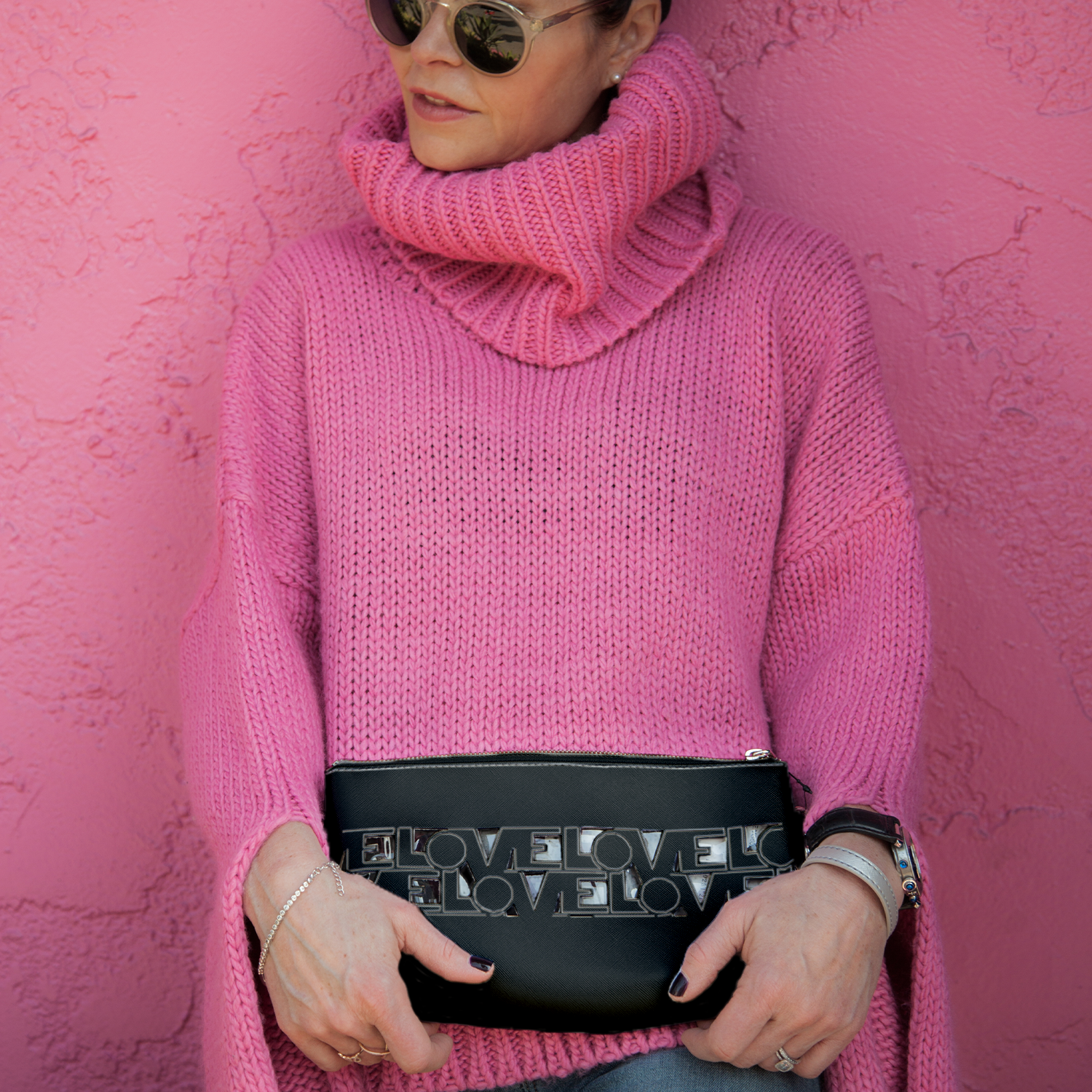 Each Love Clutch is vegan and crafted with meticulous attention to detail, complemented by chrome clasps and a 1/4” zipper. The LOVE Clutch is available in four stunning colors: red, pink, silver, and black (with Love Strap), and makes a great addition to our Love Totes.