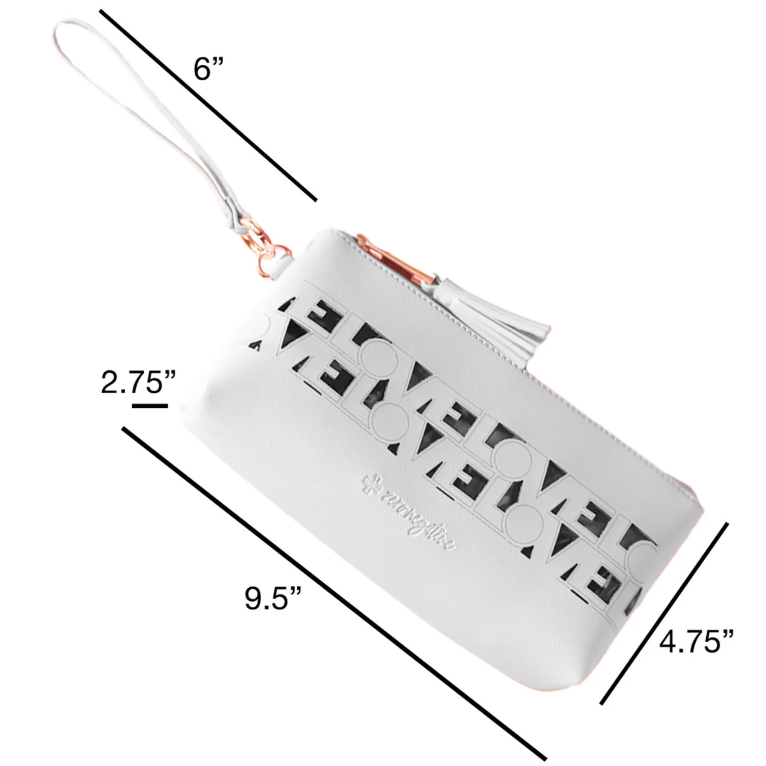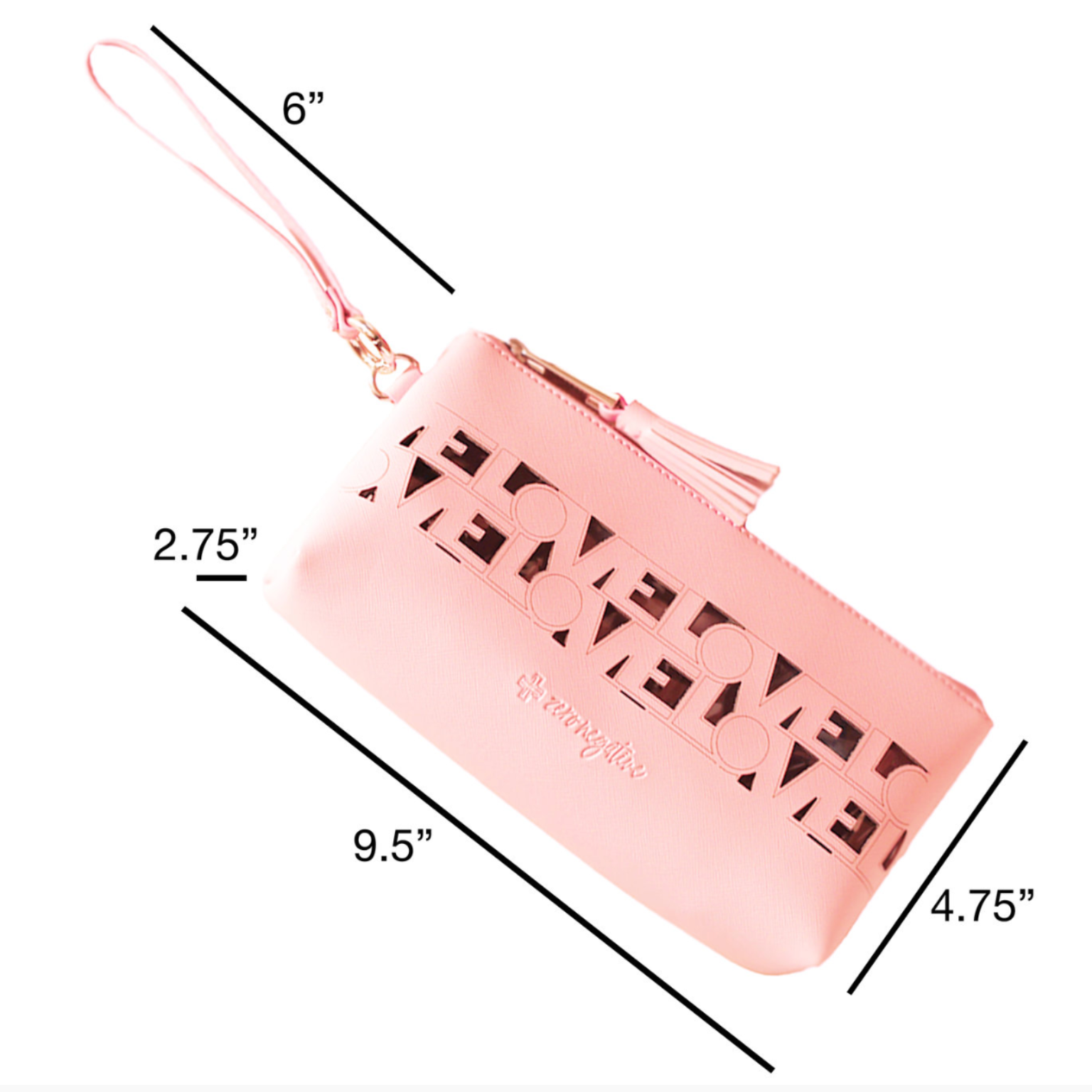Our LOVE Clutches make for chic makeup bags and evening accessories. Designed with the active fashionista in mind, this clutch is perfect for carrying your smaller essentials, such as your phone, headphones, sunglasses, and makeup. It’s a stylish and practical accessory that exudes positivity and love, a reminder to LOVE life and all that comes.