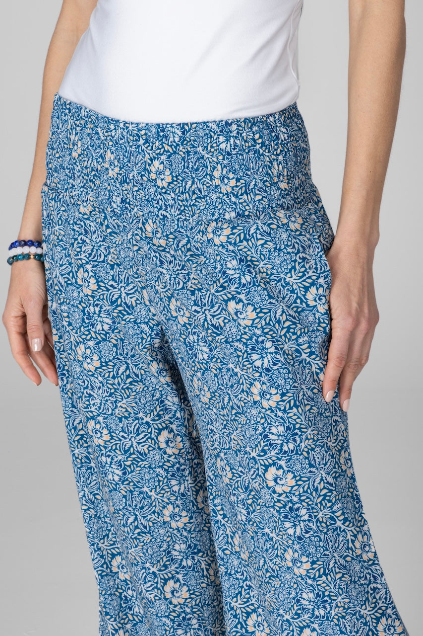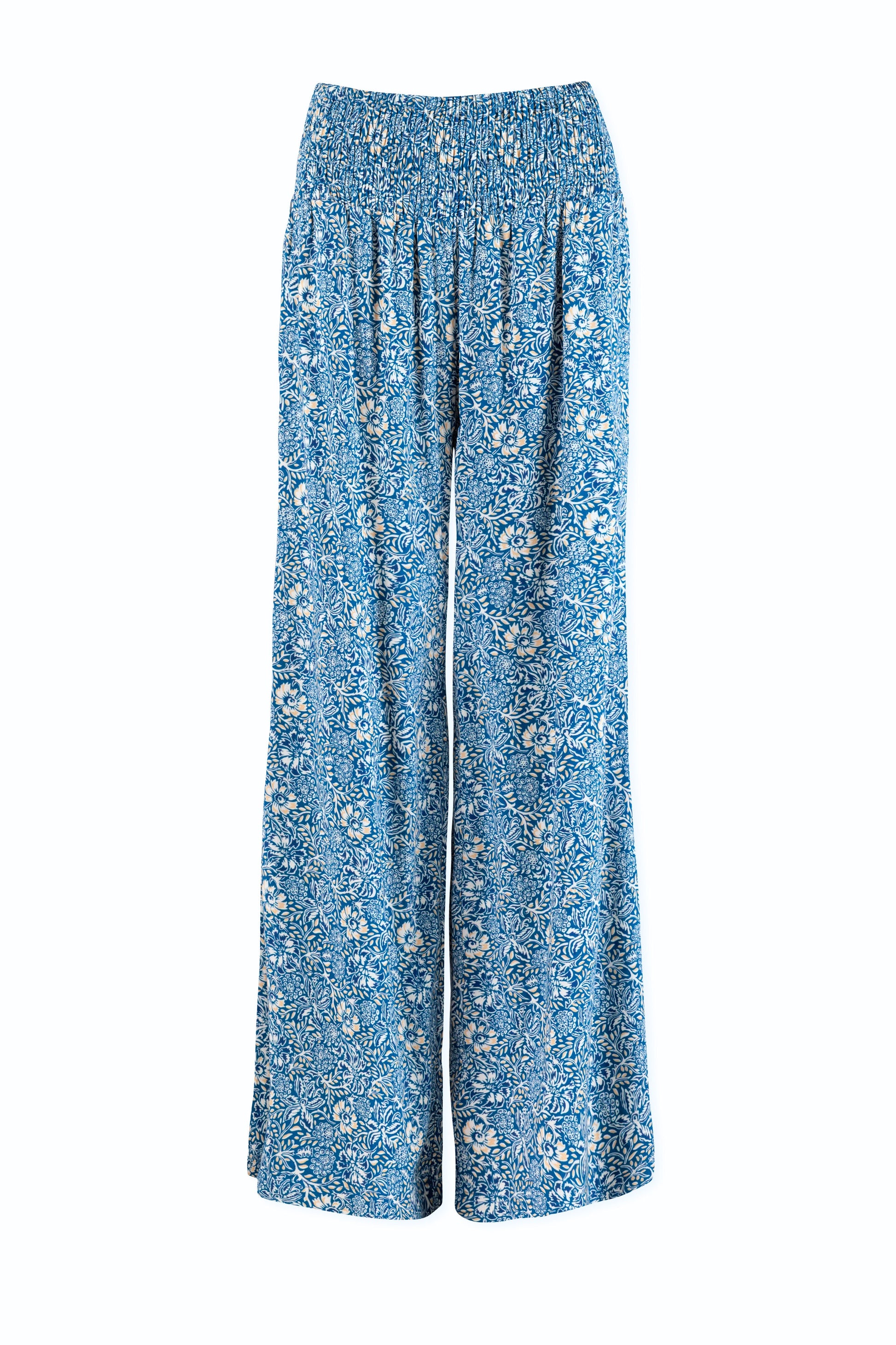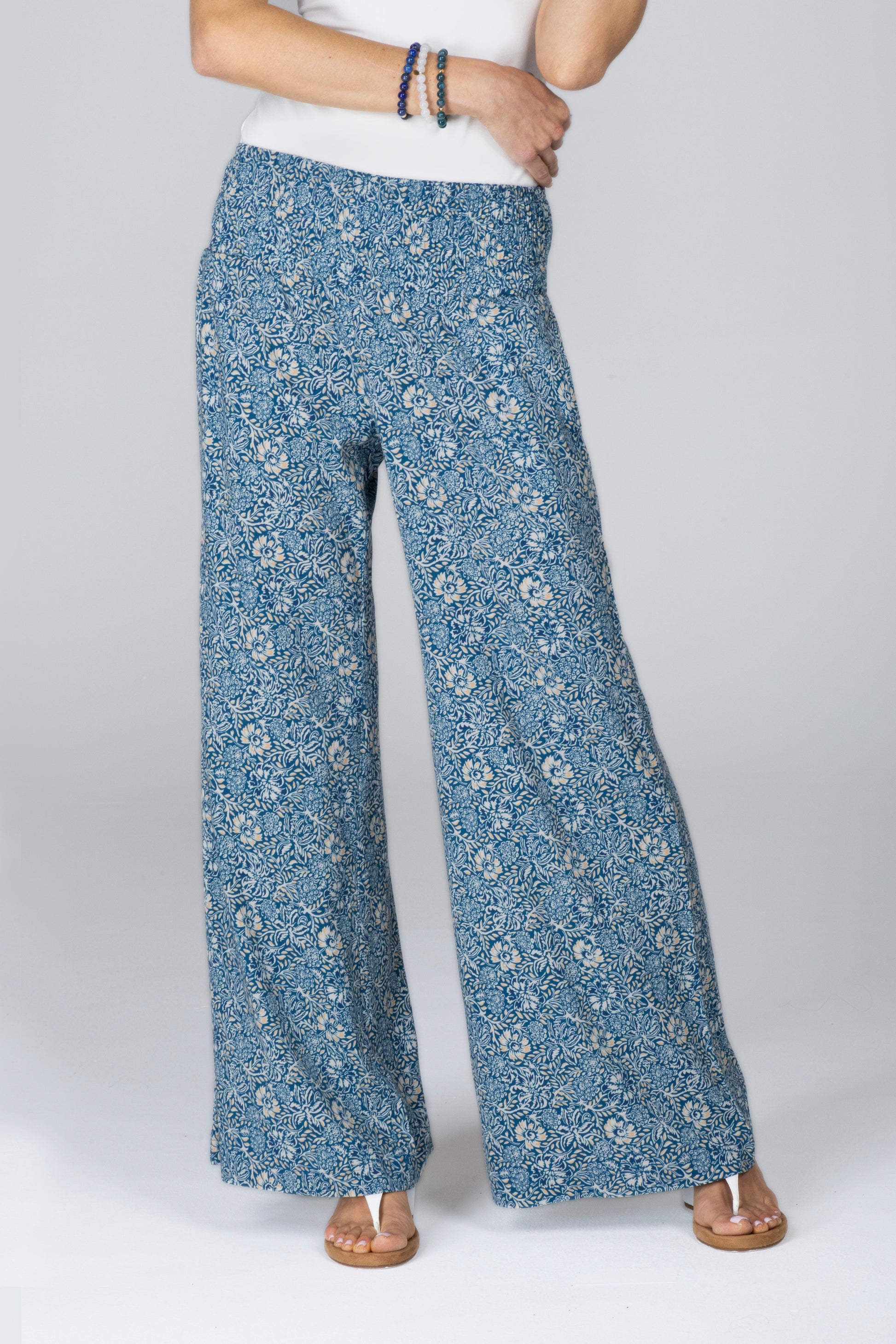 Elevate your style with our Portofino Pant.  These wide-leg pants feature a unique Blue Batik print, side pockets for added convenience, and a comfortable smocked waistband that ensures a perfect fit. Whether you're traveling the world or enjoying a day out, these pants made from our signature TravelDream™ fabric are your go-to choice for effortless style and comfort.