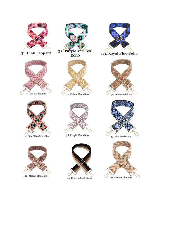 First choose the vegan leather color for your crossbody.  Then choose your strap style.