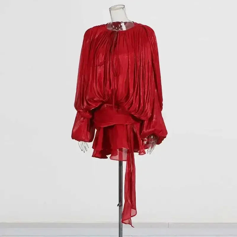 Design: V-Neck | Spliced Lace-Up Detail | Draped Decoration